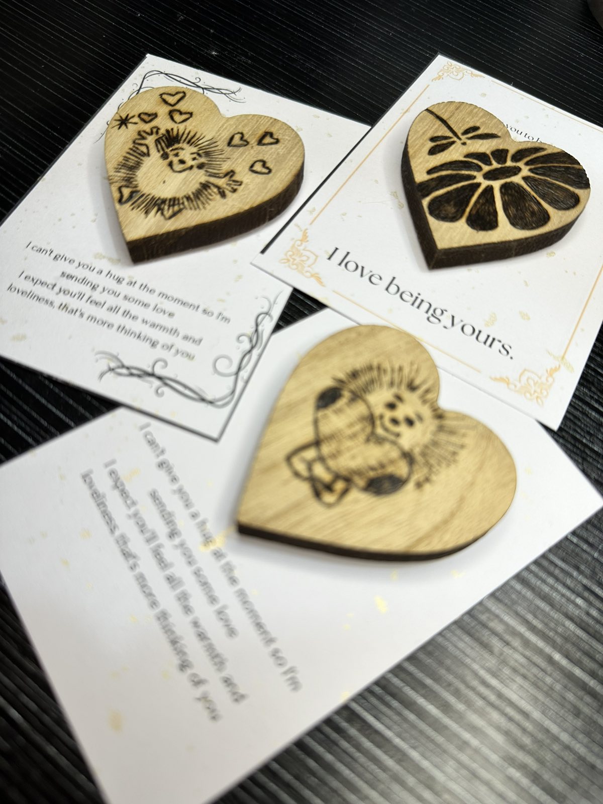 Малък жест, голяма любов! Този ръчно гравиран дървен магнит във форма на сърце носи специално послание и е идеален подарък за всеки, когото обичате. Поднесен върху красиво картонче с романтично пожелание, той е не само символ на любов, но и спомен, който ще остане завинаги.