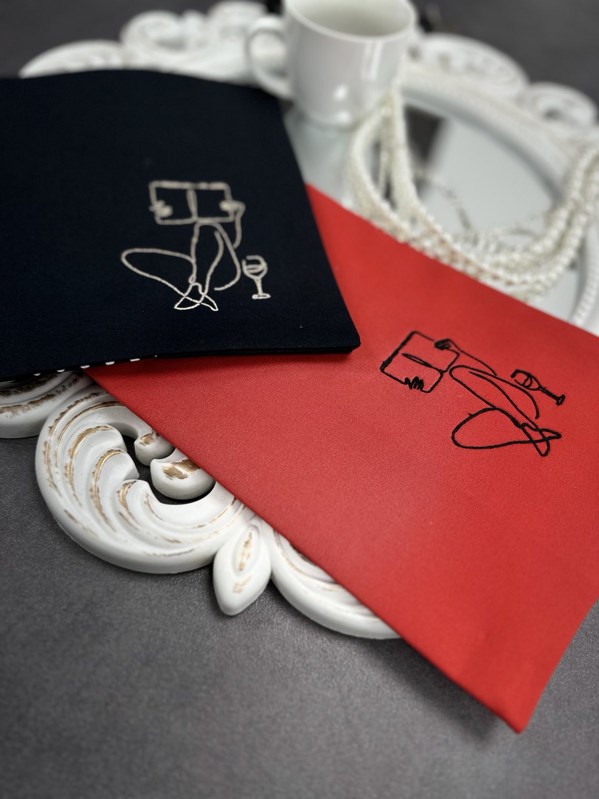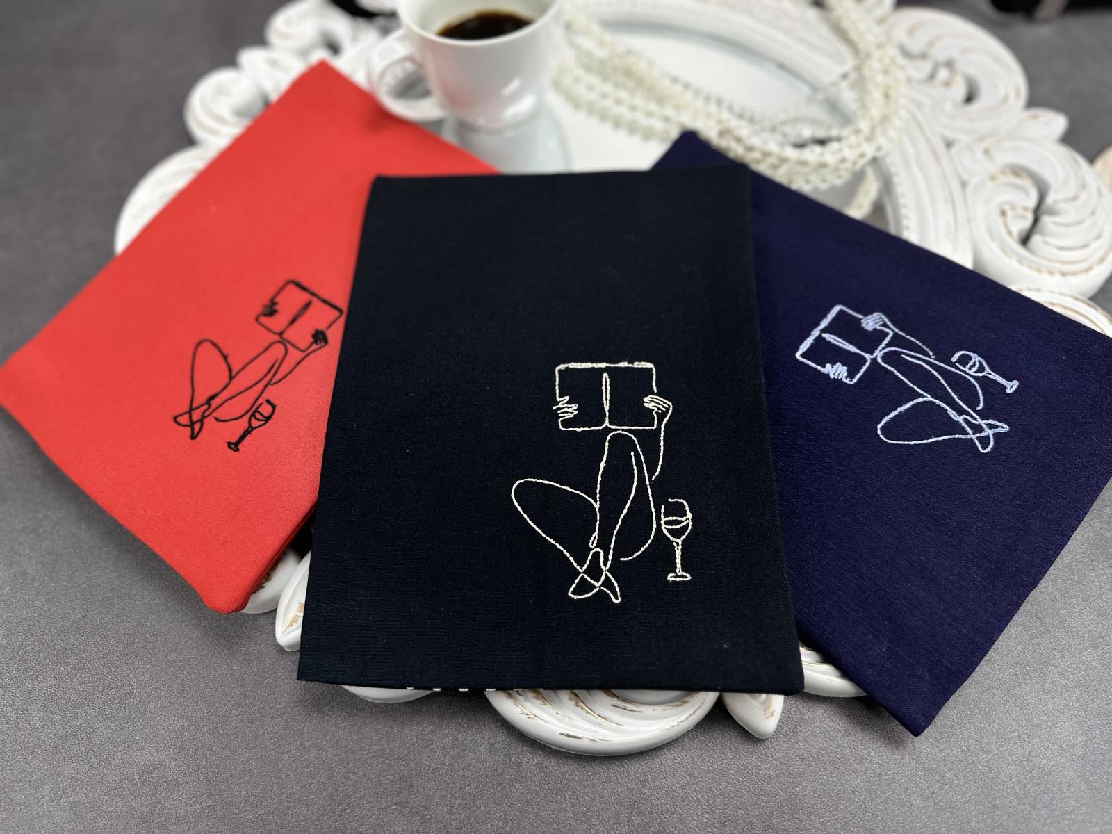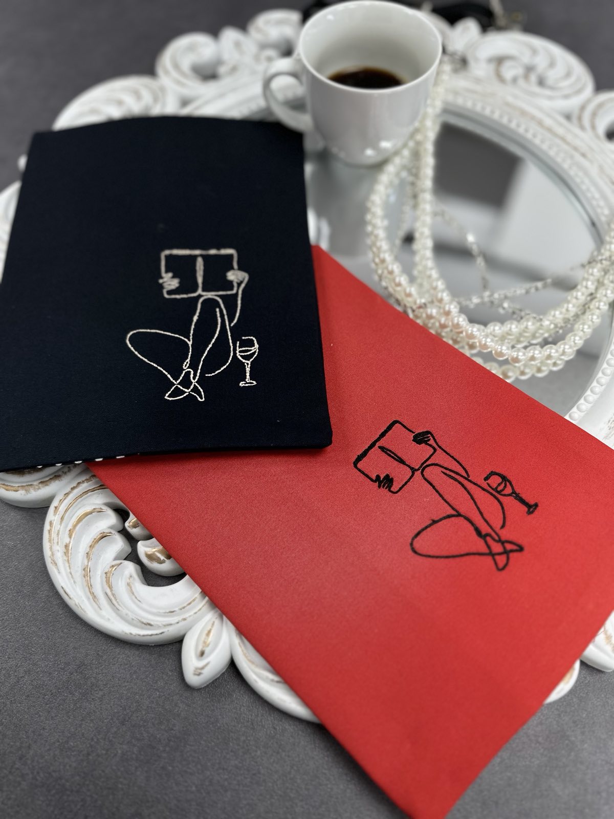 Тази стилна дрешка с бродирана дама, наслаждаваща се на своя момент, е създадена за всички, които обичат да четат с удоволствие и стил.