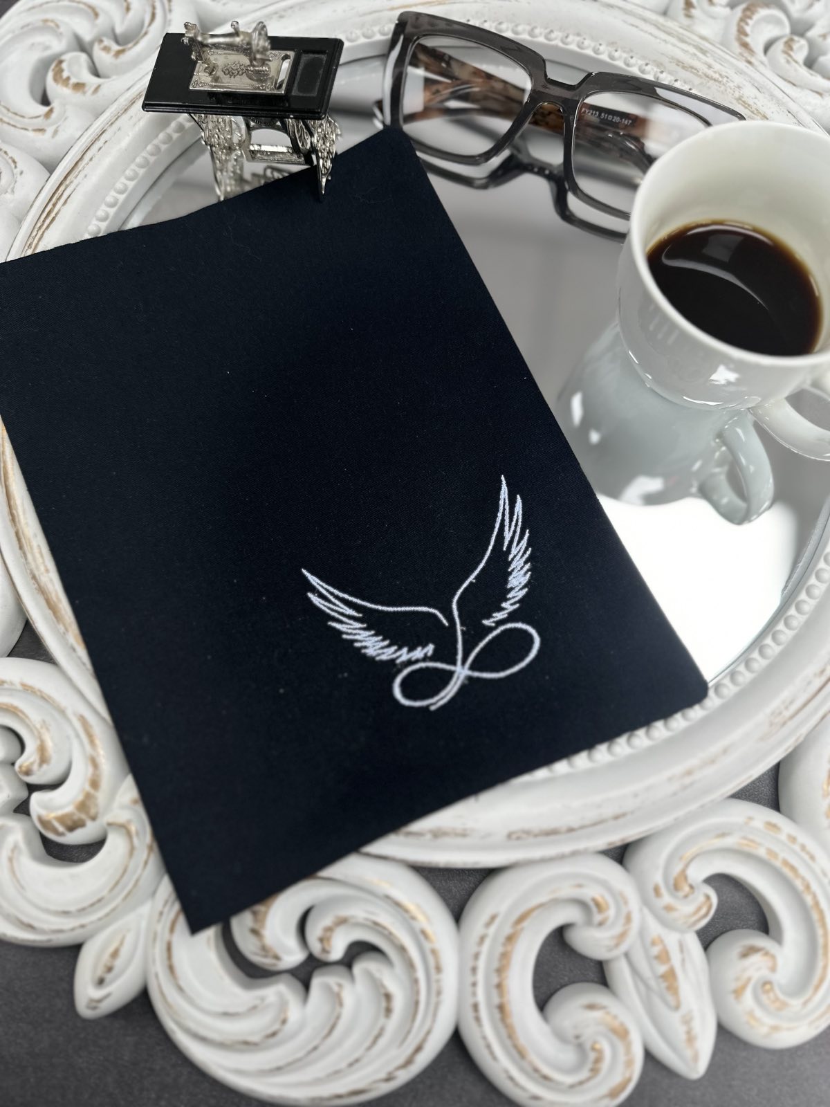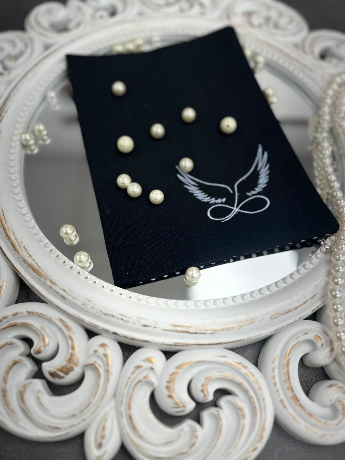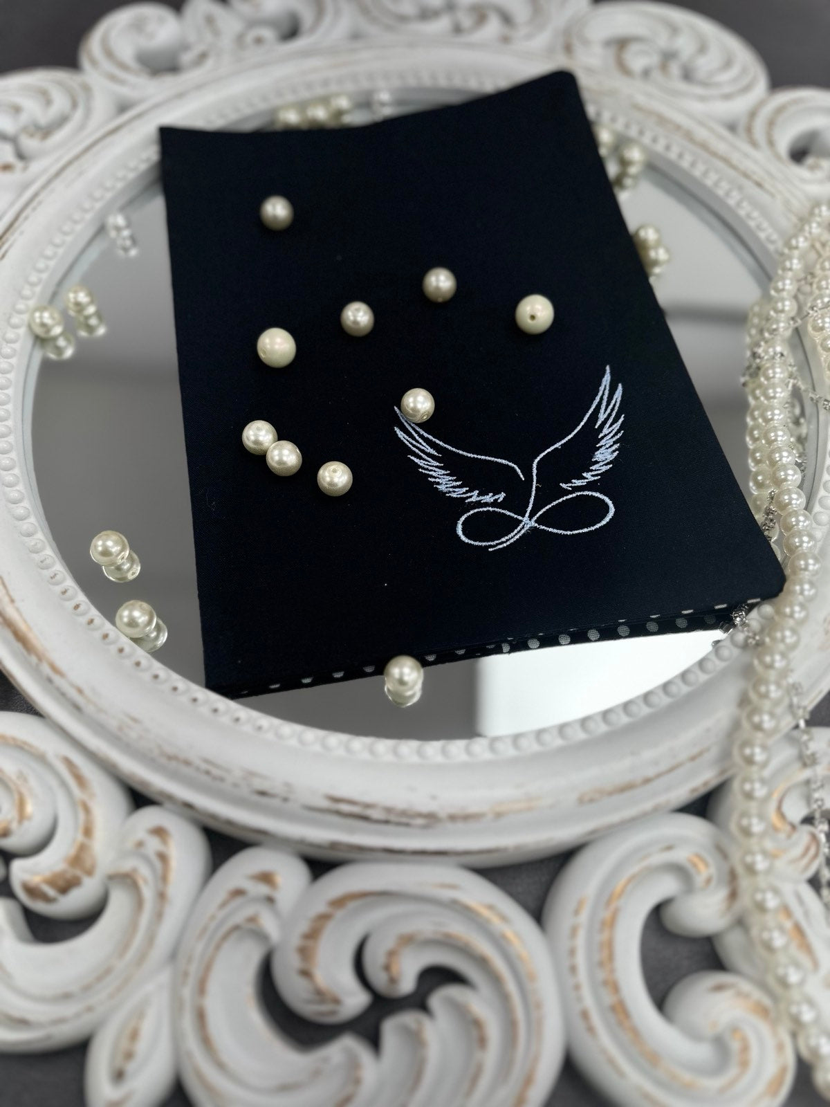 📖✨ Дрешка за книжка с бродерия "Ангелски крила" – защита за твоите най-съкровени истории