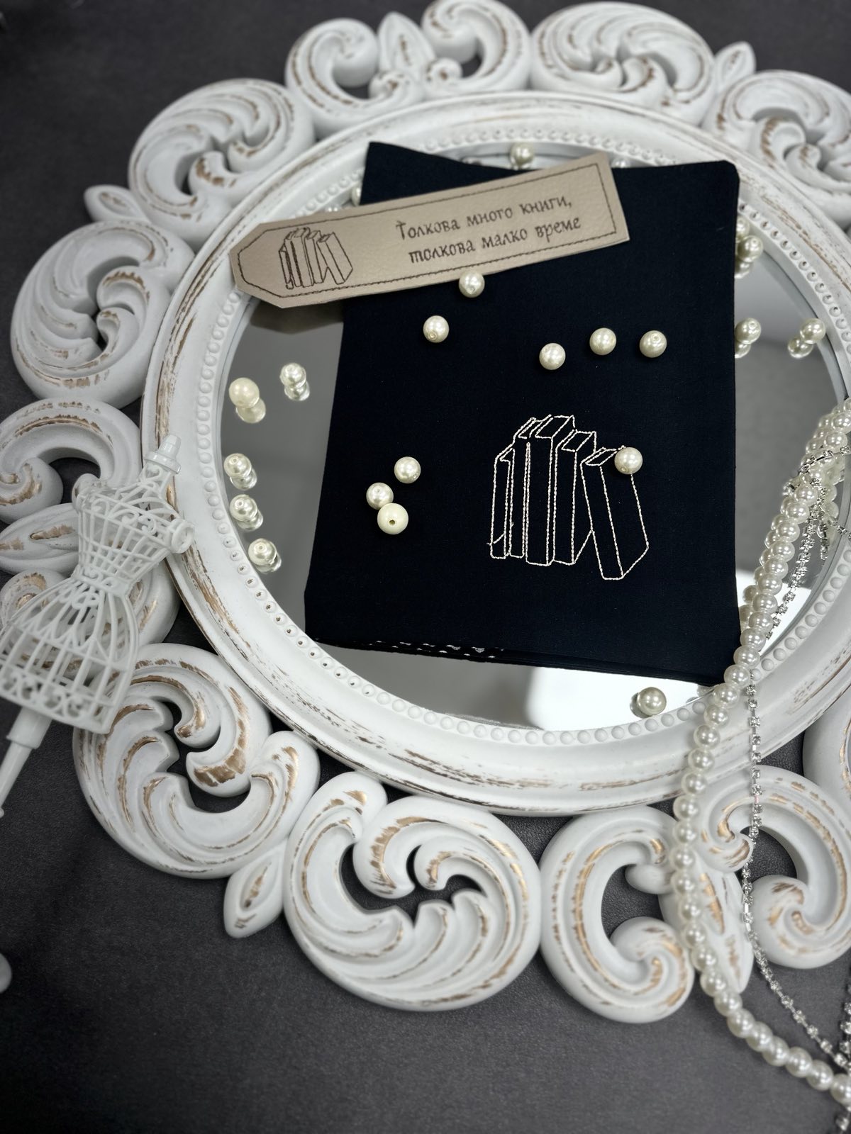 Истинско удоволствие за всеки книголюбител – дрешка за книжка с избродирани книги, която не просто пази страниците, а носи уют и вдъхновение във всяко прелистване.